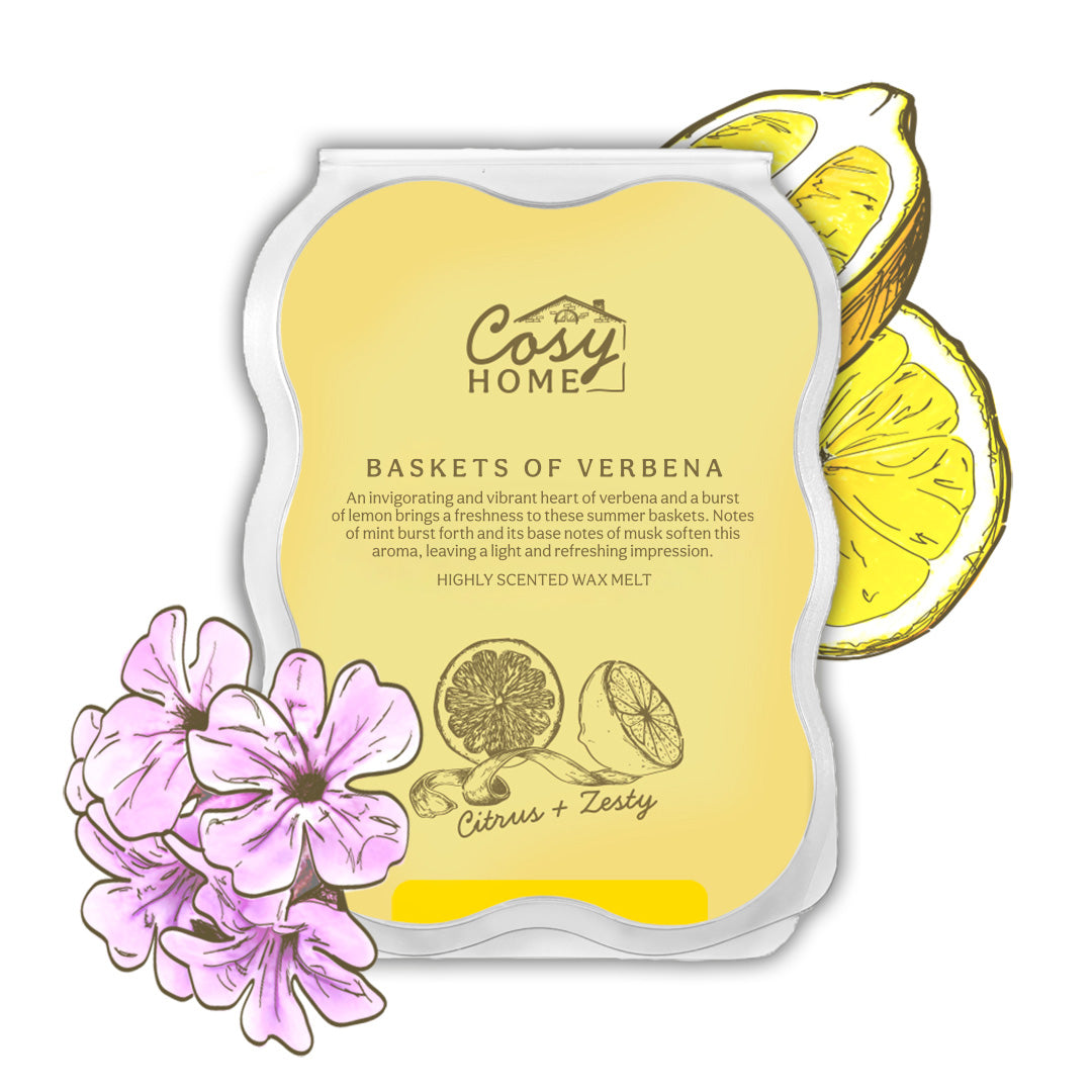 An invigorating and vibrant heart of verbena and a burst of lemon brings a freshness to these summer baskets. Notes of mint burst forth and its base notes of musk soften this aroma, leaving a light and refreshing impression