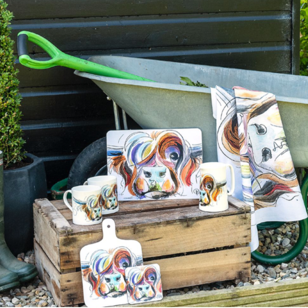 Featuring his iconic silhouette, the Highland Hero Collection includes beautifully illustrated coasters, mugs, placemats, tea towels, and even candles – perfect for gifting or adding a touch of countryside charm to your own space.