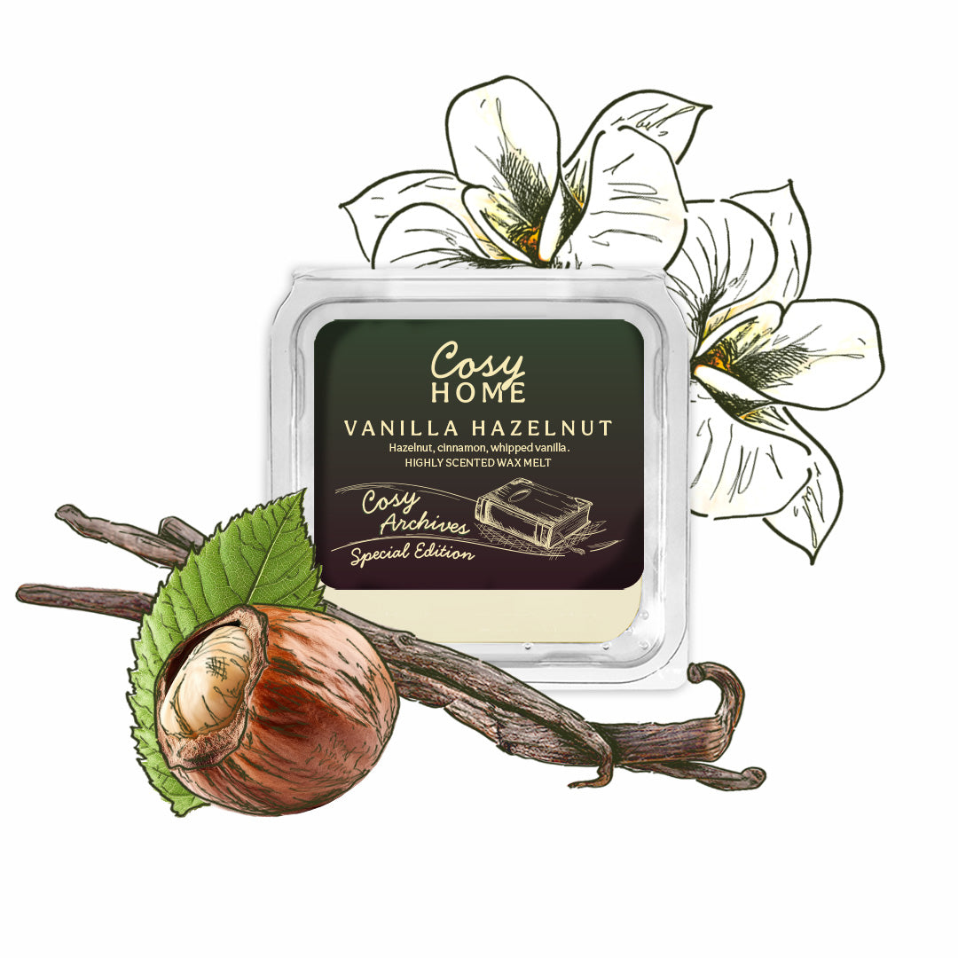 A sweet and creamy fragrance with notes of warm hazelnuts, blended with soft spicy notes of white ginger, cinnamon, and clove on a whipped vanilla base. A sweet comforting scent to fill your room with warm autumn vibes.