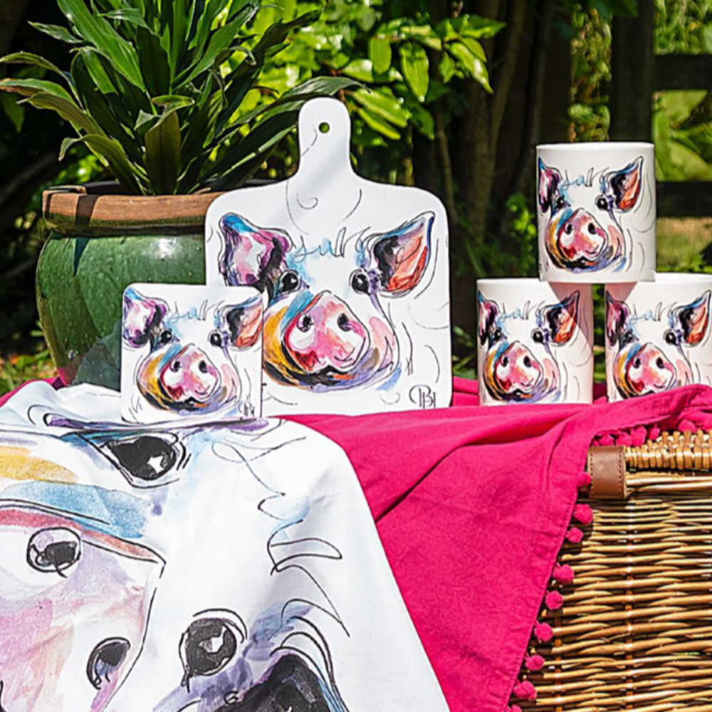 This charming collection includes beautifully illustrated coasters, mugs, placemats, tea towels, and a signature scented candle – perfect for gifting or bringing a touch of pastoral sweetness to your home.