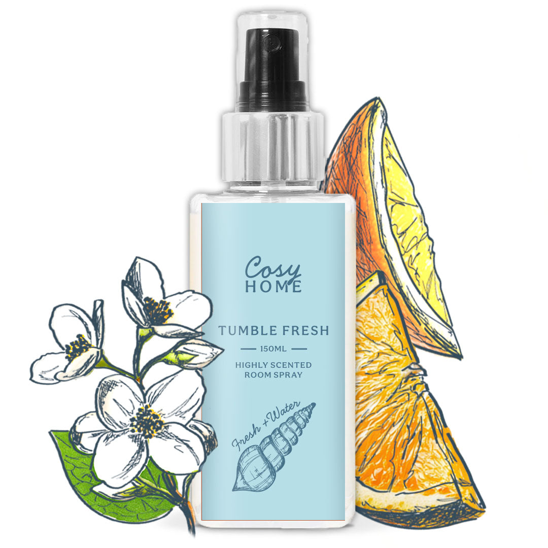 Our Tumble Fresh room spray unmistakable scent of fresh sheets and clothes. That gorgeous clean scent has been captured in this stunning room spray.