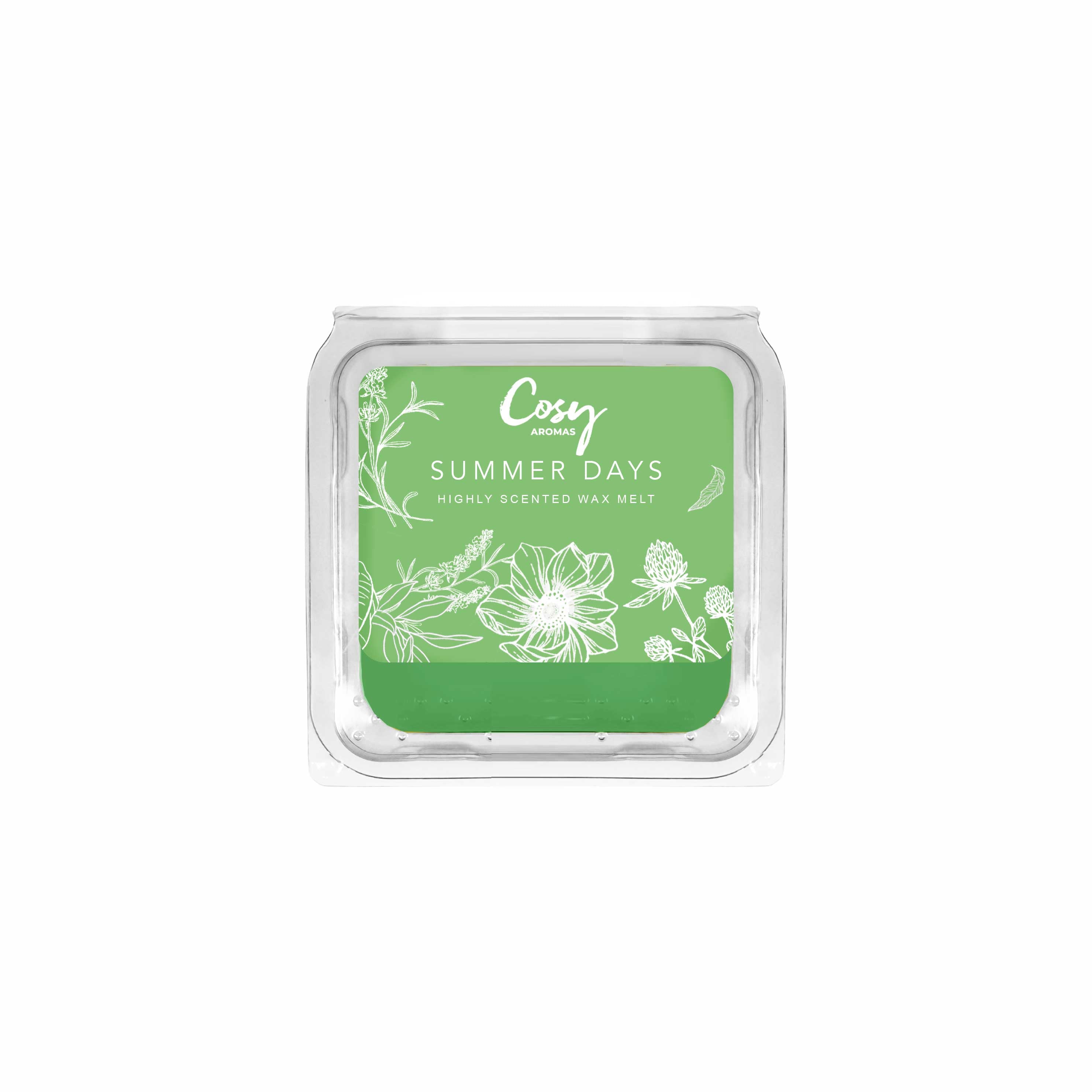 Our Summer Days soy wax melt is an invigorating and uplifting scent of spring flowers with hints of natural patchouli and white cedar.