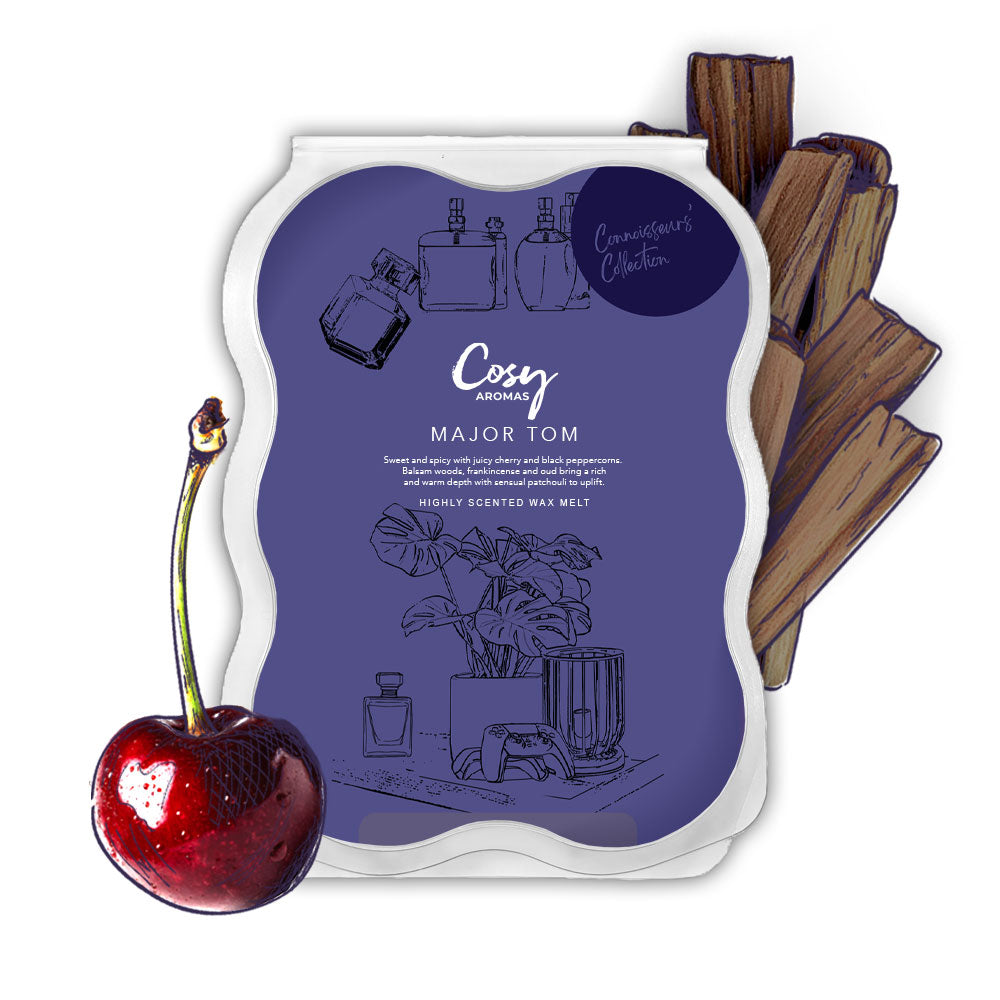 Inspired by the popular perfume by Rabanne. Major Tom is a blend of sweet and spicy aromas, with notes of juicy cherry enhanced by pepper, balsam and frankincense. Oud, oak moss and patchouli add a sensual layer to this complex fragrance.