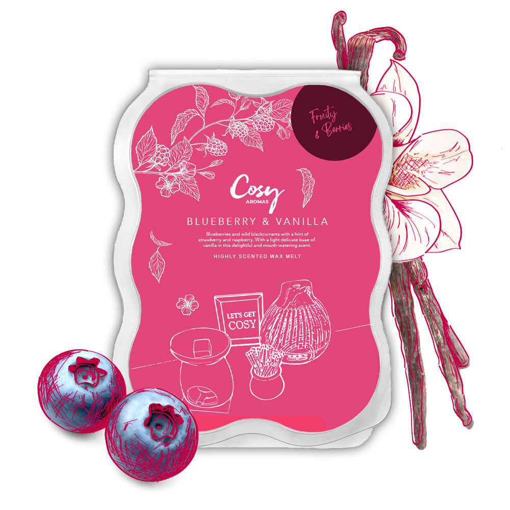 Blueberry and vanilla is the sweet, mouth-watering scent of blueberries with hints of strawberry, raspberry and blackcurrant on a delicious base of vanilla. This is a sweet foody scented wax melt that will fill your home with hours of tummy rumbling scent.